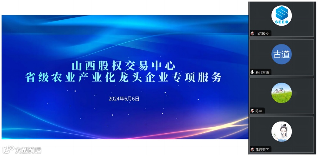 【服务·省级农业龙头企业】山西股权交易中心组织开展省级农业龙头企业线上专项服务活动