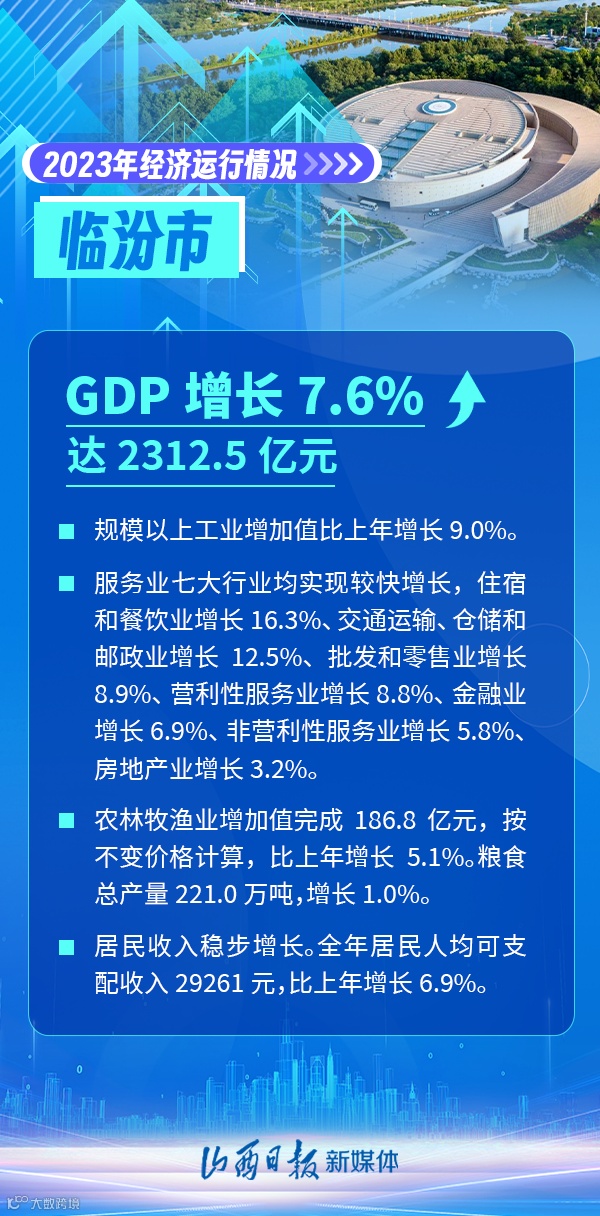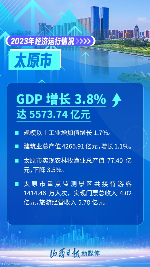 近日,山西省统计局公布了山西省内11个市2023年经济数据。从经济总量看,2023年省会太原市GDP为5573.74亿元,位列各市第一位;从经济增速看,临汾市GDP增速达到了7.6%,全省领跑。