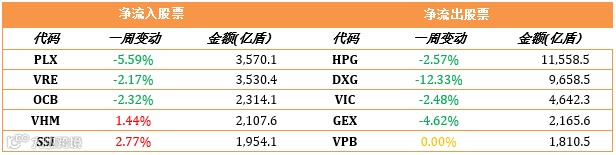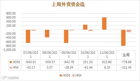 外资仍净售压力继续延续,不过规模有所下降,上周净售额为7800亿盾。和发钢铁HPG外资出售压力最大,其次是绿地地产DXG。与此同时券商自营组净购5600亿盾。