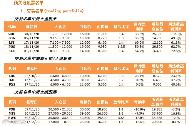 我们认为在市场愿意付出更高的市盈率以入仓,我们认为当市场大涨时 不一定要抛出股票。同时,投资者不应该在高价位追买 而当跟进组合中股股票下调或在短期积累 应该选择合理入仓点。