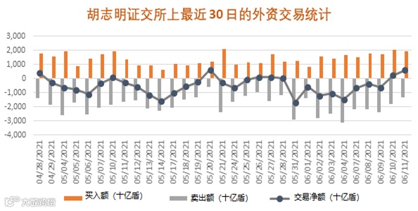 在胡志明证交所HOSE外资净流入6,100.9亿盾。河内证交所HNX外资净流入87.7亿盾。