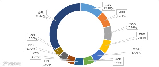 Vin集团VIC 和越南牛奶VNM双股持有比重最大均为8%。未来越南股票比重将增至69.22%, 高于前期的65.22%。