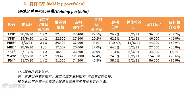 交易组合:上调军队银行MBB的目标价至44.000盾/股,剩下涨幅为11.7%;