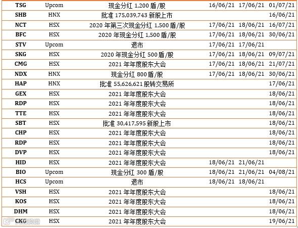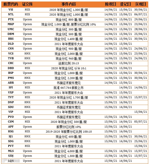 工商银行(简称:Vietinbank)公告得到央行增资批准。据此,2021/6/11 Vietinbank 收到央行的《4142/NHNN-TTGSNH》公函有关批准该银行发行股票分红增加注册资本方案,注册资本自37.234 万亿盾增至48 万亿盾。发行资金来源自2017-2018年的建立各基金的税后利润和2019年建立各基金和现金分红之后的剩下利润。