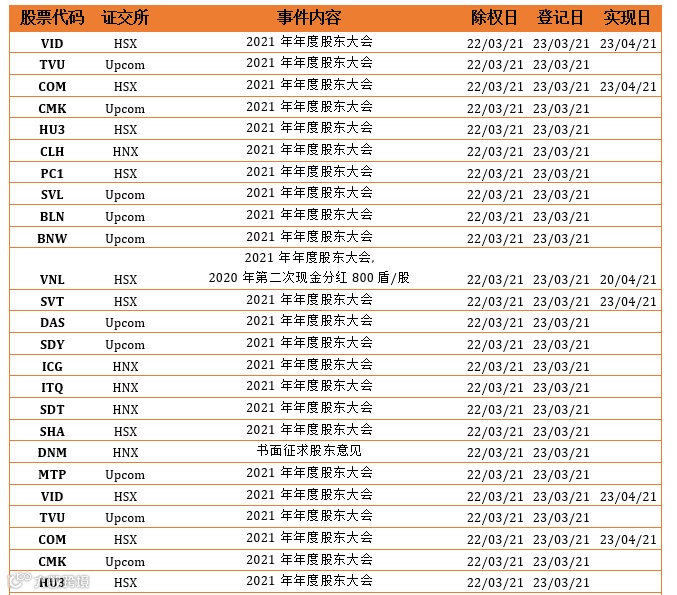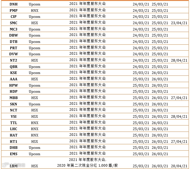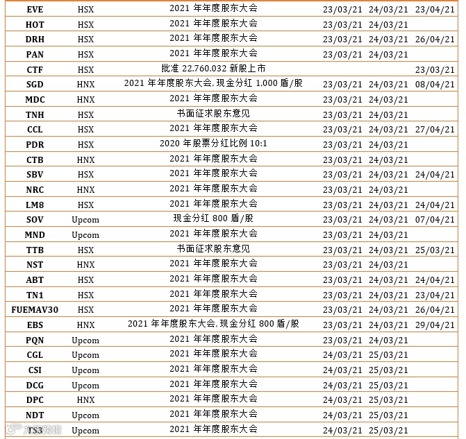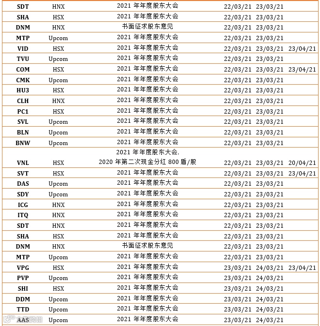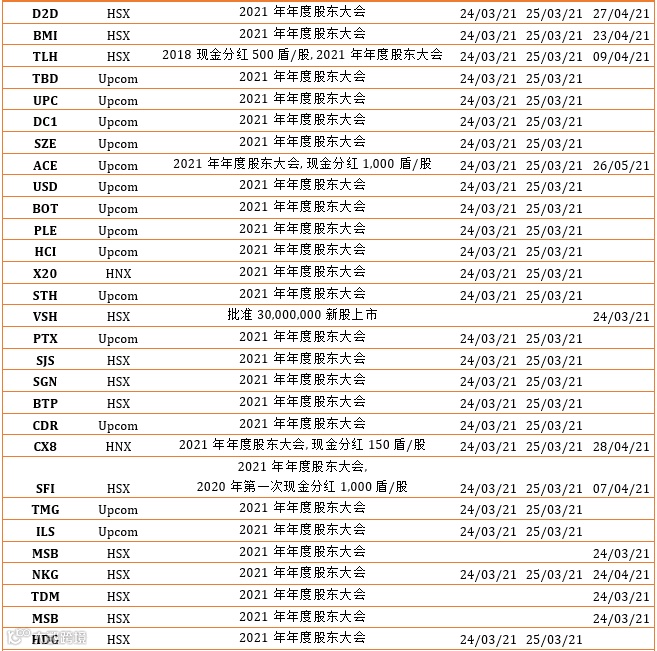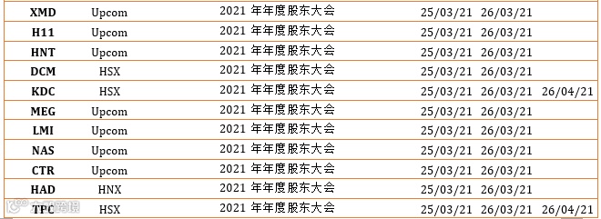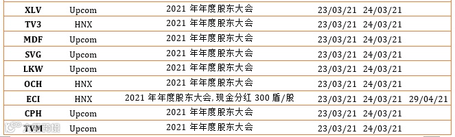昨日3月18日,VND召开2021年的股东大会,会议上董事长-范明香女士表示预计今年第一季度,VND收入达4400亿盾,完成2021年税前计划利润11,000亿盾的40%,同比增6倍。