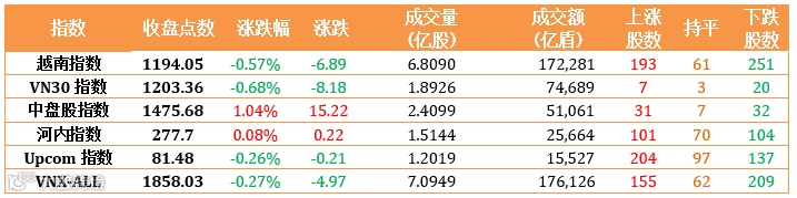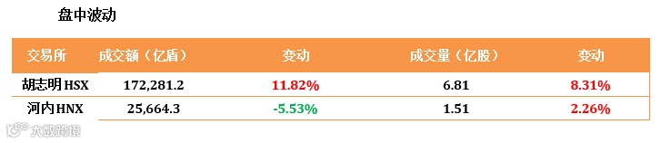 在胡志明证交所HOSE外资净流出11,230.7亿盾,河内证交所HNX外资净流出352.2亿盾。
