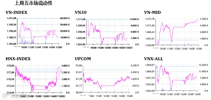 关于盘中波动,周一交易单调,周二大盘有时跌至1170点,激活了低点区的购买力放量增加,从而促使大盘复苏。这支持了积极心理,助于周三指数大幅上涨,收盘于日中最高位。最值得一题的是周四,越南指数开盘放量上升,全日保持涨势,最终收盘集合竞价ATC时间再次猛增,指数收盘于1200.94点,越过了2021年1月历史顶部,但缺点是日成交量不大。周五,市场不能延续该涨势而回落下调。
