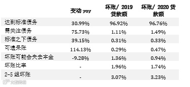 银行的坏账率为1.74%, 低于2019的1.96%, 不过仍然高于整个行业的平均水平。由于使用准备金以处理坏账,第五组的坏账余额 将9.28%。反之