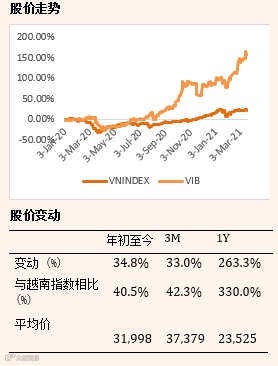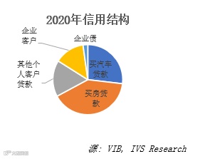 只在2020年,VIB信用增长高于五年来平均水平,达29.4%。主要原因是银行继续扩大零售业务,占银行贷款余额的84%,2020年底达144万亿盾并同比增长32%。其中与2019年相比,买房贷款增长41%,买汽车贷款增长21%。