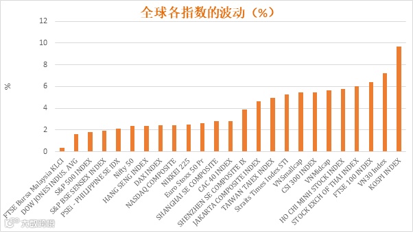 上周全球主要证券指数和越南指数的波动