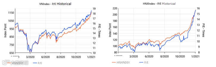 上周,大盘股一齐上升尽快拉升指数接近历史顶区。市场流动性继续放大,比起2020年最后交易周,胡志明证交所上和河内证交所的日均成交量分别上涨29.5%个46%。新投资者陆续加入市场,体现在12月份的新开账号创历史新高,这就是促使市场流动性创历史新高的主要原因,并是VN-Index目前上涨的主要动力。目前全市场的交易账号为273万个,相当于越南人口的2.79%。