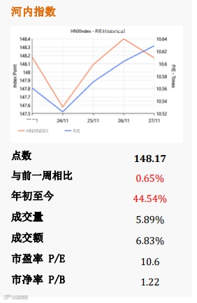 上周越南指数收盘微涨2%,低于前一周2.5%的比例。