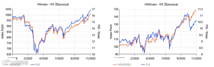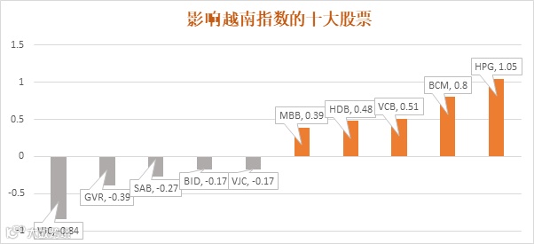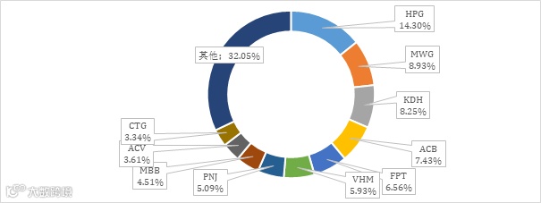 单个板块而言,上周房地产板块受Vin地产VHM(涨5.7%) 和Vin集团VIC(涨1.3%)所带领。市场景气和2021年新证券法正式生效,证券股票受市场关注,具体:西宫证券SSI涨6.3%、VNDirect 证券涨6.4%、胡志明证券HCM 涨5.1%和越资证券VCI 涨4.9%。银行板块中,代表是越南盛旺银行VPB 和胡志明发展银行HDB分别上升 5.9%和 5.5%。