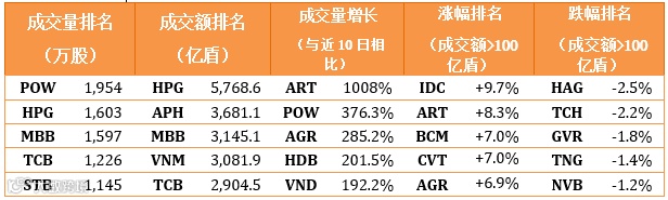 1000点的心理门槛已被冲破,市场之柱的若干股票出现卖压,其中市场焦点是:和发钢铁HPG两个交易日单日成交量创历史新高达两万亿盾,高于河内证交所的成交量。实际上,带领市场股票中出现分配压力,同时资金流正在转入其他股票板块。市场乐观心理以及新投资者加入市场,市场将面临止盈压力危机后,长期上涨趋势将被延续。