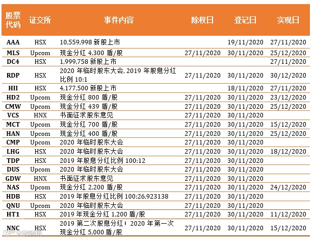 2020年第一次现金分红比率60%,每股收6,000盾。除权日12月3日,股权最后登记日12月4日,发放日2021年1月29日。此外,南新鸳进行截止股东名单以发行800万红股,送股比率2:1,相当于持有2股收1新股。