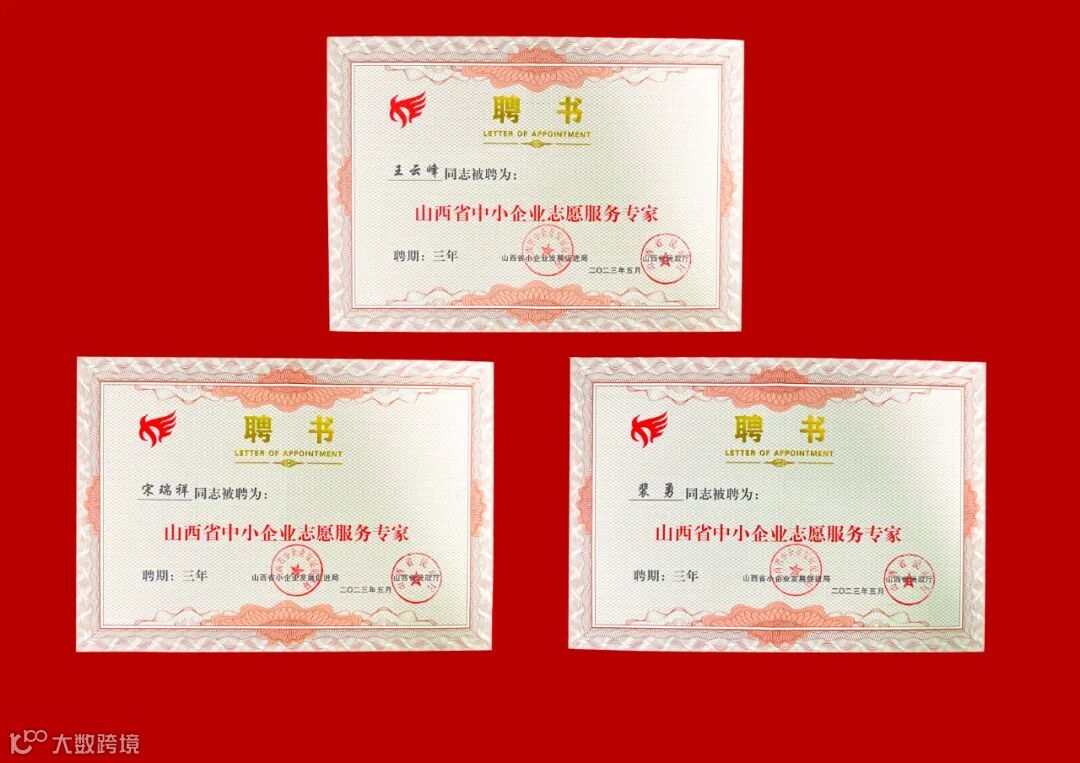 ,中心王云峰、宋瑞祥、裴勇三位同事受聘为山西省中小企业志愿服务专家。