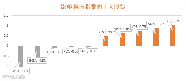 反之,Vin集团VIC、越南牛奶VNM、越南盛旺银行VPB和Vin地产VHM对指数做出最大贡献。