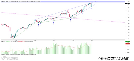 2020年12月1日,越南股市开盘立即下滑,此后跌幅收窄。剩下交易时间复苏趋势延续,午盘下半场大盘继续上升并收盘在日内最高点位。