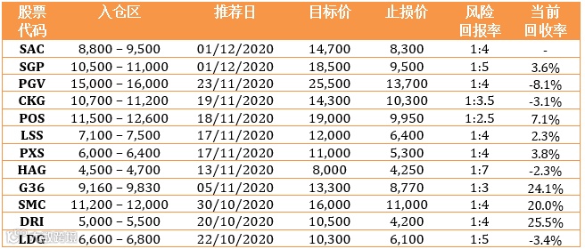 注释: 交易名单刚添加SGP和SAC。SGP 盘中建议投资者。