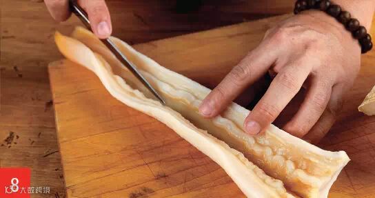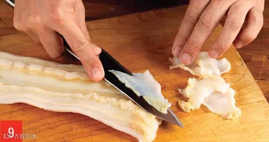 9. 在大多数的菜色中,象拔蚌虹吸管最好是用利刀斜切成薄片 既柔嫩又爽脆。