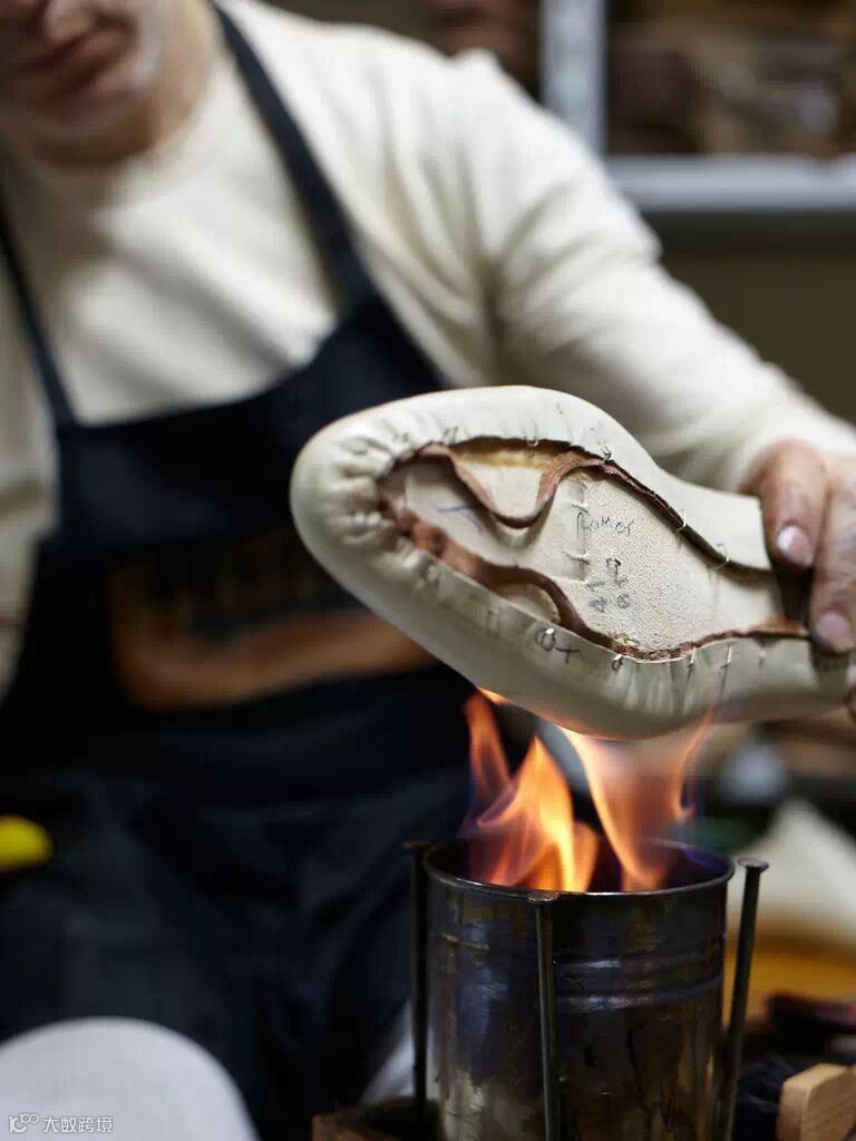 ▲Bontoni鞋匠们在火焰上加热皮革,然后像捶铁一样敲打皮革,让鞋呈现理想的形状。