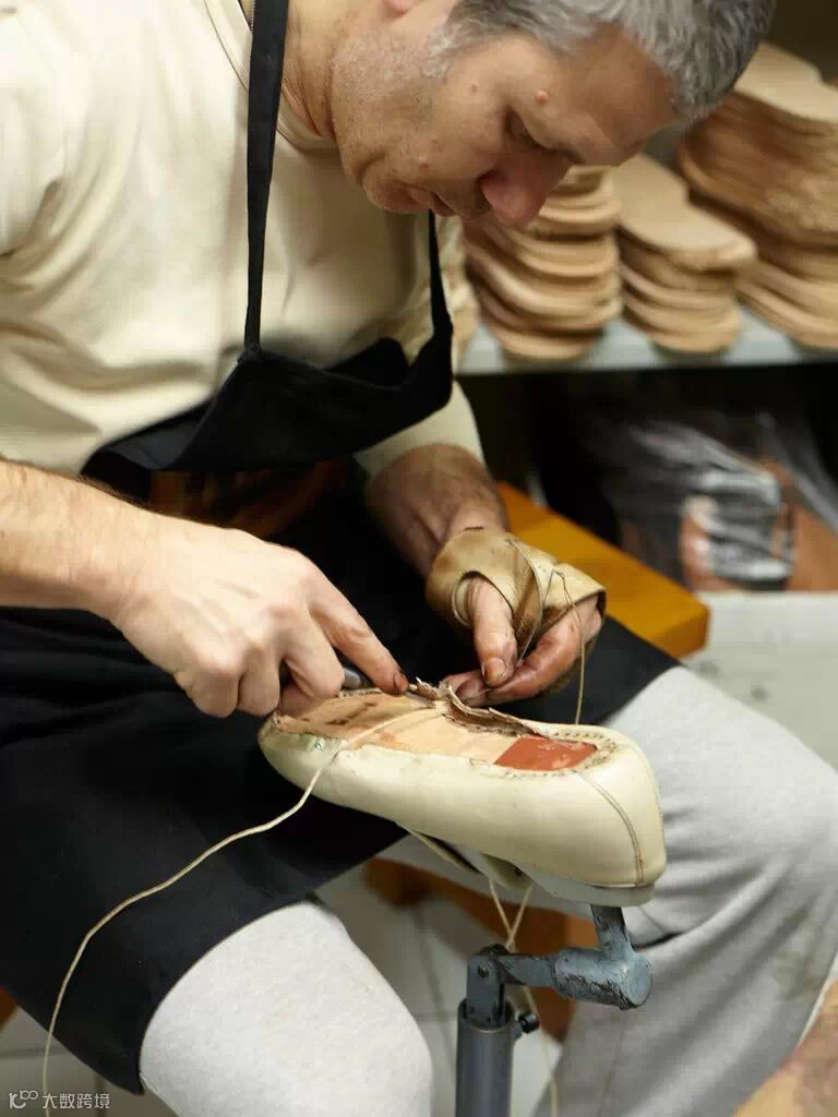 ▲几乎所有这里制造的鞋一开始都是白色皮鞋,由鞋匠手工缝制,然后花费数周绘制上色。