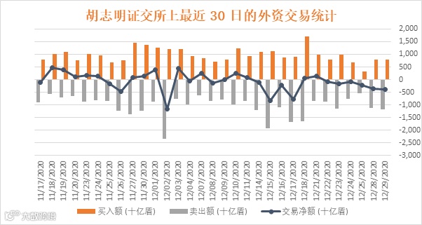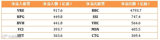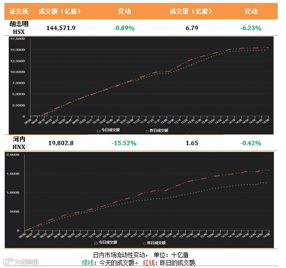 在胡志明证交所HOSE外资净流出3,850.2亿盾,河内证交所HNX外资净流出114.9亿盾。