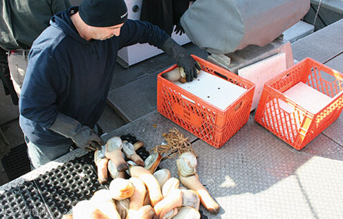 象拔蚌都是由潜水员在坚牢的远程渔船上作业采捕的,通常在卑诗省大陆沿岸以及温哥华岛,海达瓜沿岸偏僻的海域。