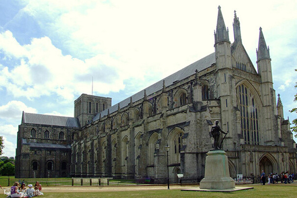 温彻斯特大教堂是英格兰最大的教堂之一,拥有欧洲所有哥特式教堂中最长的中殿和总长度。傲慢与偏见的作者简奥斯丁就是埋葬在这里的北边通道,但她的墓碑上都没有写上她作家的身份,因为她所有的作品都是她死后才发表的。