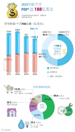 2020前7个月越南FDI达188亿美元。