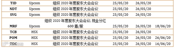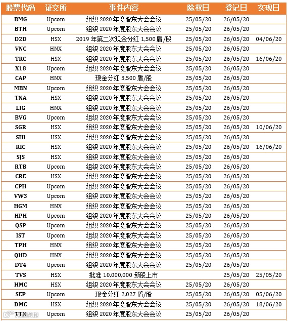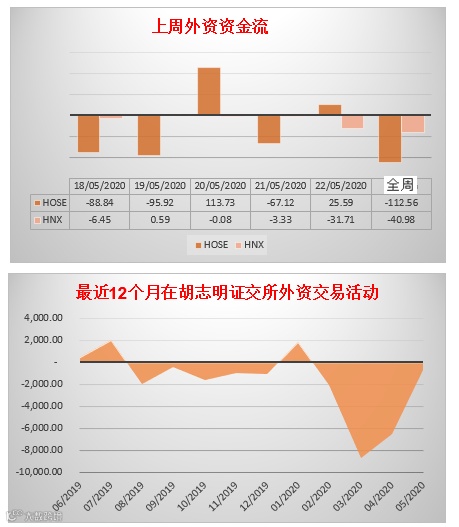 越南控制好疫情正在帮助全球投资者对越南经济和证券市场的前景给予高度评价。据最近的诸多评论,2020年越南的GDP增长率可达2.5%以上。尽管外资净流出,越南股市仍延续复苏态势。越南指数强劲的复苏势头开始引起世界资金流的关注。回顾年初情况,第一季度春节假期的需求增加使宏观数据相对乐观,而因社会隔离措施导致4月份结果锐减,下周将公布5月份的宏观数据,预期将显示出复苏信号。
