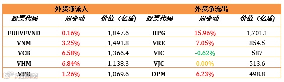 关于股指基金,VNDiamond基金 (FUEVFVND VNEquity)上市之后继续吸引外国投资者的大量资金金流入。虽然外资净卖出仍是主流但净流出价值已减少,同时在大型企业外资加仓的空间开始缩小,这表明外国资本似乎已再次回归越南股市。此外,SSI基金管理公司SSIAM也即将建立一个以VN30为基准指数的ETF基金以吸引对蓝筹股的被动投资。