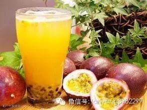 2、百香牛奶汁:材料:百香果一个,鲜奶350CC,蜂蜜一大勺,柠檬汁少许,碎冰少许