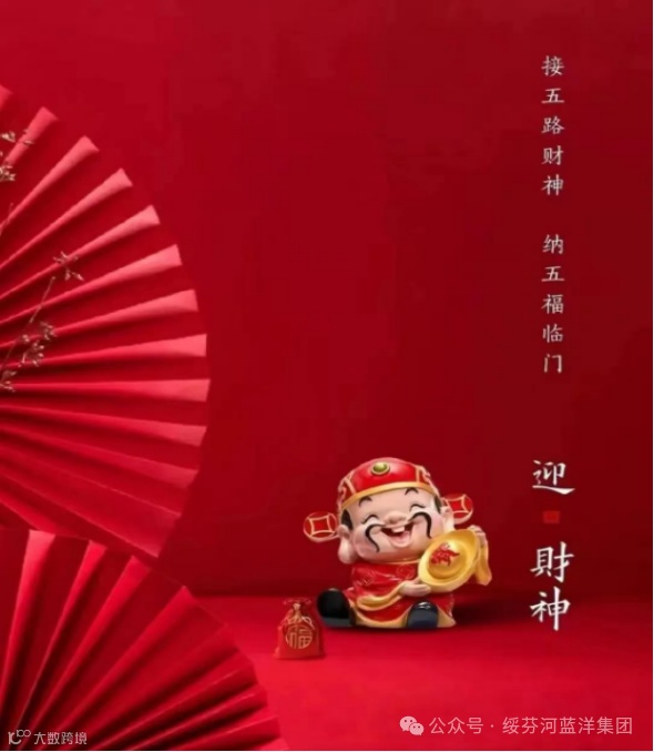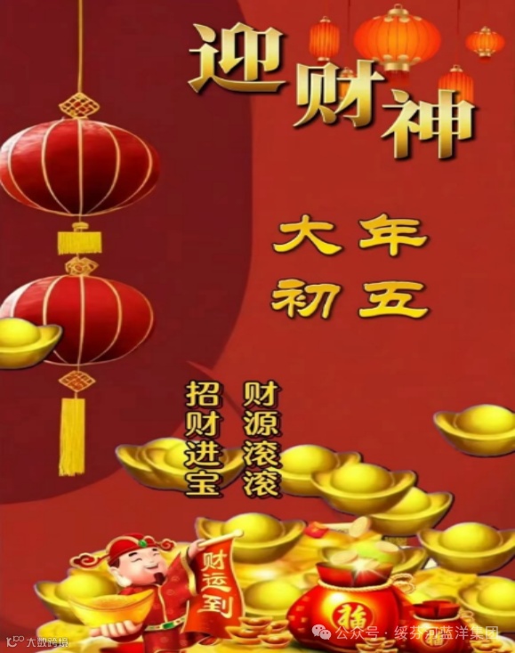 大年初五,五福临门,喜迎财神,财源滚滚进家门!
