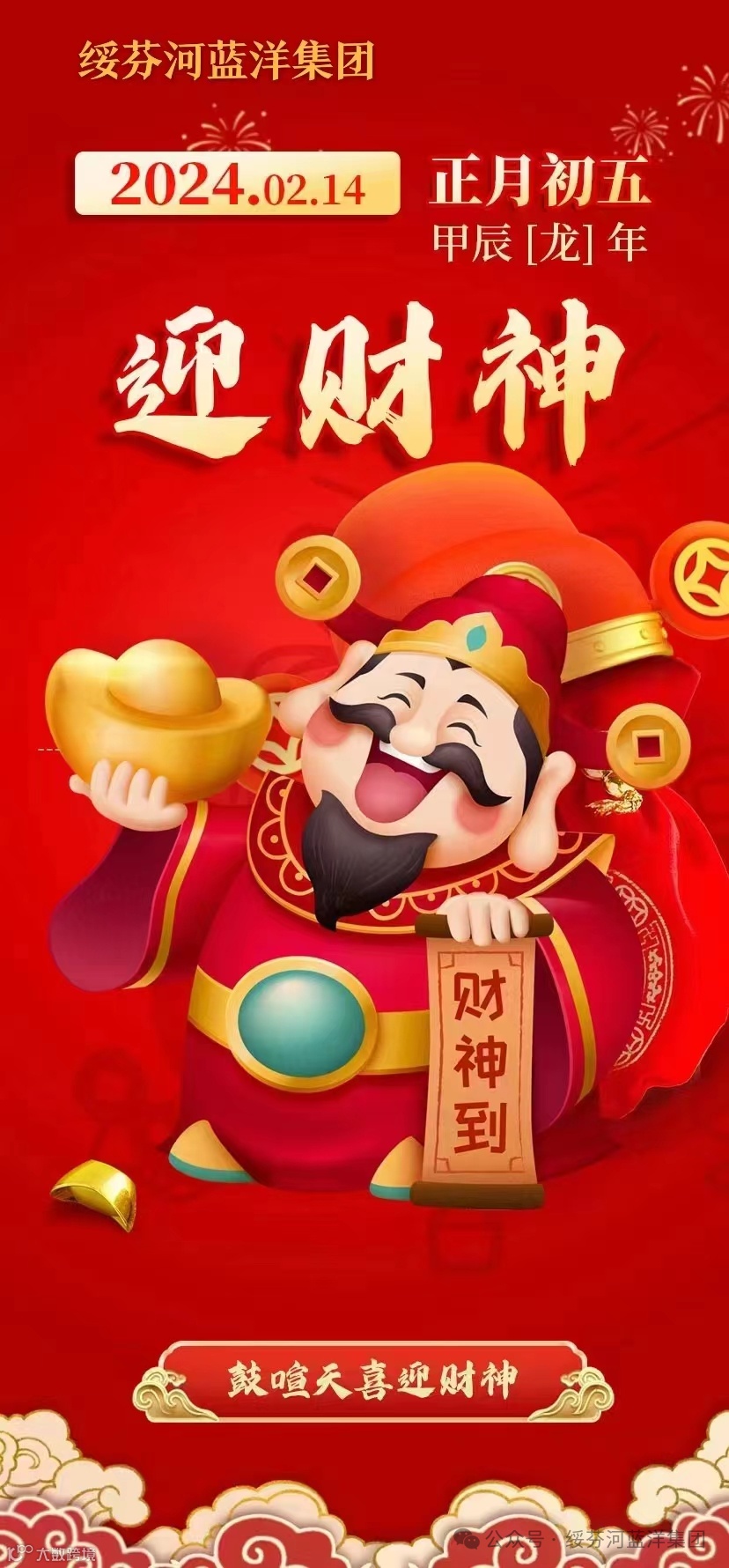 求财纳福,是每个人最朴素的愿望。今天,拜了财神,求得财神给我们的新年带来好运。让我们互道一声“恭喜发财”,蓝洋公司愿天下所有的人都能通过自己的努力,得偿所愿,日子越过越好。愿所有人,龙年吉祥如意,年年富足事事顺,四季财源福满门!