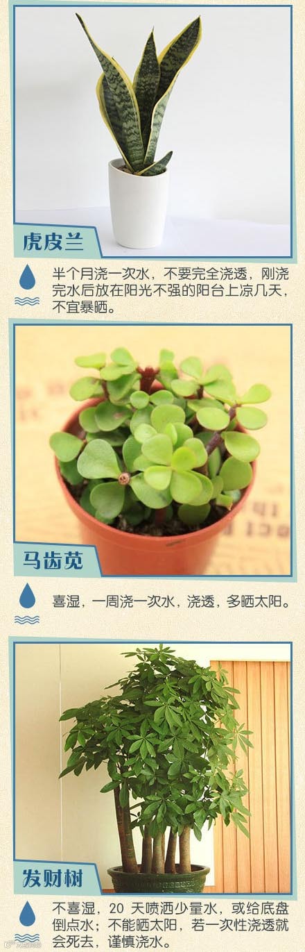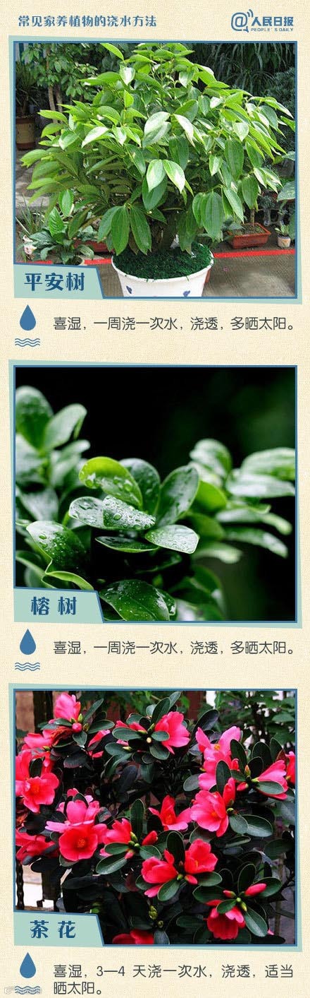 平安树、茶花、绿萝喜水,而发财树、金钱树、虎皮兰则不喜水……很多人都喜欢养花,但花买来之后,往往不会照顾,水不是浇多了淹死了,就是浇少了旱死了……超级实用的常见家养植物的正确浇水方法↓↓给爱养花的TA!