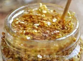 3.蜂蜜倒满罐子,用蜡密封,十天后就可以食用,而且愈陈愈香。桂花酱可以加冰水冲饮,也可以涂面包馒头 ,可以沾梅、桃、草莓 ,也可以当菜的佐料。