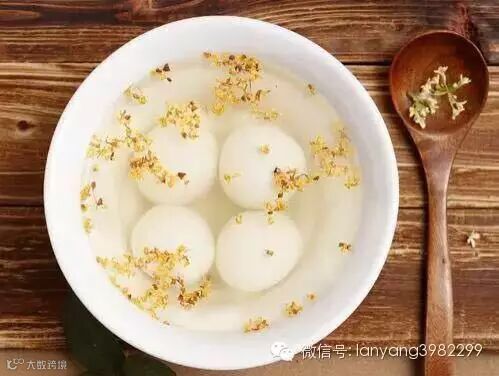 3.将桂花馅包入糯米粉中,做成汤圆。