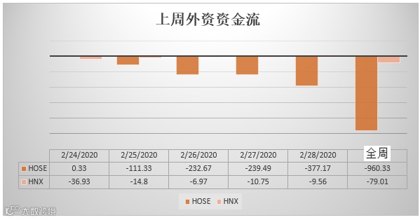 自春节以来外资连续5周净卖出,总价值为33,300亿盾。值得注意是,外国投资者连续14个交易日净流出,总额近2.5万亿盾。