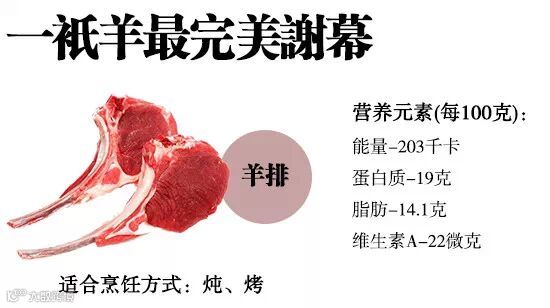 羊肉,古称之为羝肉、羯肉,因其既能御风寒,又可补身体,故为全世界普遍最受欢迎的肉品之一。羊肉对一般风寒咳嗽、慢性气管炎、虚寒哮喘、腹部冷痛、等一切虚状均有治疗和补益效果,适宜于冬季食用,被称为冬令补品,深受人们欢迎。