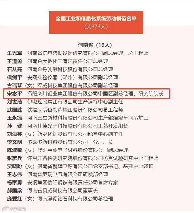 近日,全国工业和信息化系统先进集体、劳动模范、先进工作者表彰名单发布。