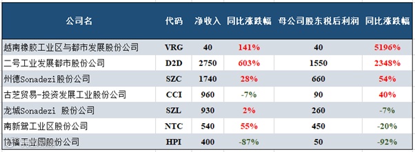 据统计,共有7家工业区地产的上市公司已公布今年三季度财务报表。
