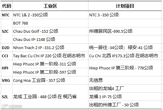 工业园房地产企业管理的工业区名单