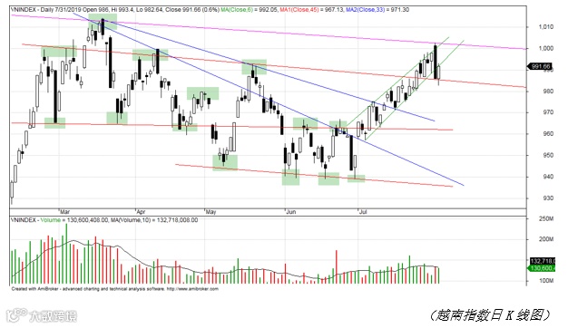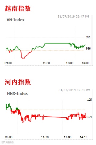 7月31日越南股市早盘小幅下跌,早上尾盘回升并保持涨势到尾盘。