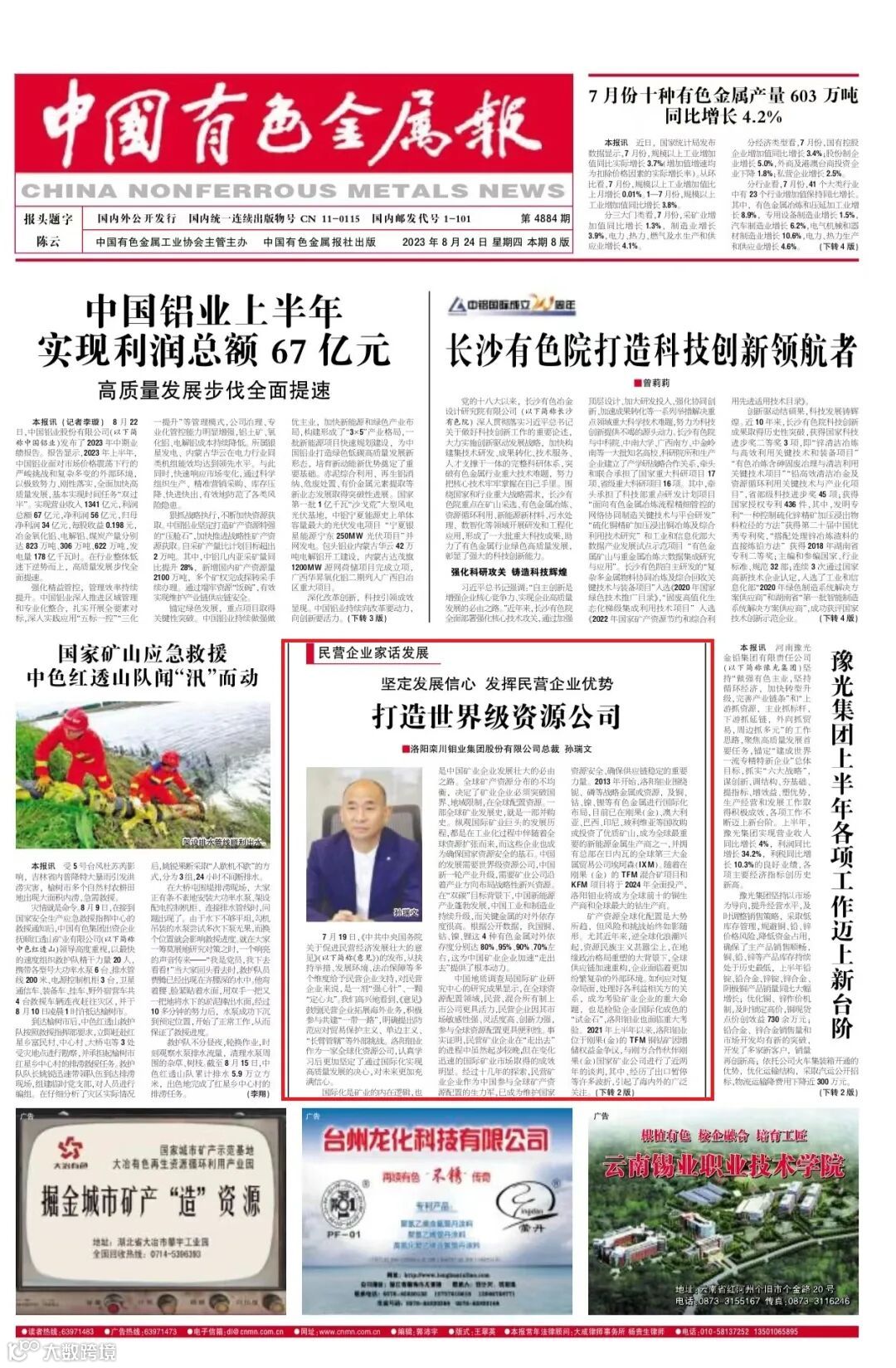 近年来,中国民营矿企逐渐成为“走出去”、参与全球资源配置和再构建的“主力军”。近日,中共中央和国务院下发《关于促进民营经济发展壮大的意见》,公司总裁孙瑞文先生应《中国有色金属报》邀请发表文章,结合中国民营矿企的独特优势、洛阳钼业的国际化实践,回答了中国民营矿企为什么要积极参与国际化、一家优秀的矿企应具备哪些能力、应如何应对风险和挑战等问题。