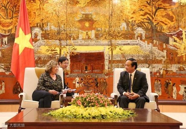 河内市人民委员会副主席阮世雄会见法国参议院参议员、法越友好议员小组联合主席CatherineDeroche 。图自互联网