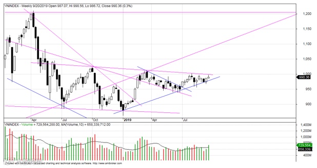 上周前两个交易日越南指数上涨接近1000点阻力区。周三市场窄幅波动,周四小幅上行。周五下跌但跌幅仍处于离1000点关口10点左右的区域。