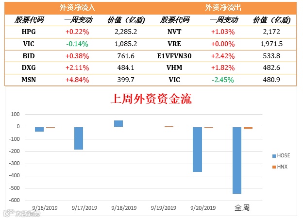 外资继续净流出和发钢铁HPG和越捷航空VJC 。特别在6月20日各基金调整换仓的那一天,外资强劲净卖出5400亿盾。在河内交易所外资净流出130亿盾。