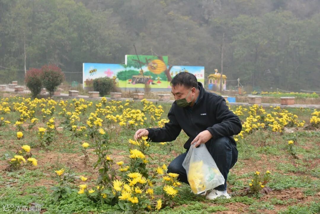 菊花采摘的村民告诉志愿者,“每年10月底开始采摘到11月中旬结束,不用出远门就有收入,真的很不错。”