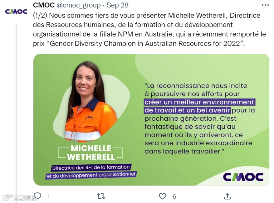 为进一步增进海外受众对公司的了解,提升企业国际化形象,洛阳钼业CMOC正式开通了官方推特账号(@cmoc_group)及脸书账号(@CMOCgroup)。目前,两个平台累计粉丝数已突破1.2万。